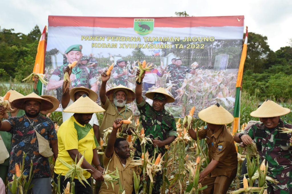 Kodam XVIII/Kasuari Gelar Panen Jagung Perdana Secara Serentak Demi Wujudkan Ketahanan Pangan Di Papua Barat