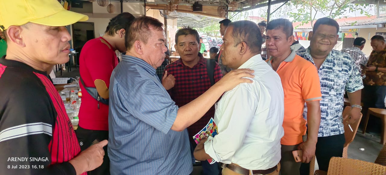 Konsolidasi Depicab SOKSI Kota Binjai bersama pimpinan Depiancab SOKSI Kecamatan se Kota Binjai, untuk memenangkan Dewan Penasehat Depinas SOKSI yang juga Caleg DPR RI Dari Partai Golkar Dapil Sumut III Mangihut Sinaga, SH, MH di Sobat Resto & Cofee, Sabtu (08/07/2023).