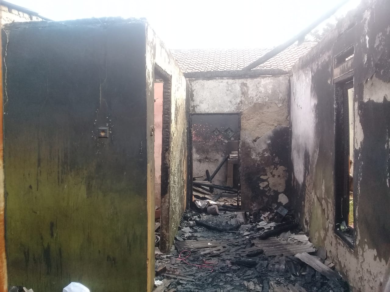 “Setelah sholat terdengar suara percikan api dan asap tebal saya langsung membangunkan suami untuk memastikan,ternyata rumah tetangga kebakaran”,Kata warga