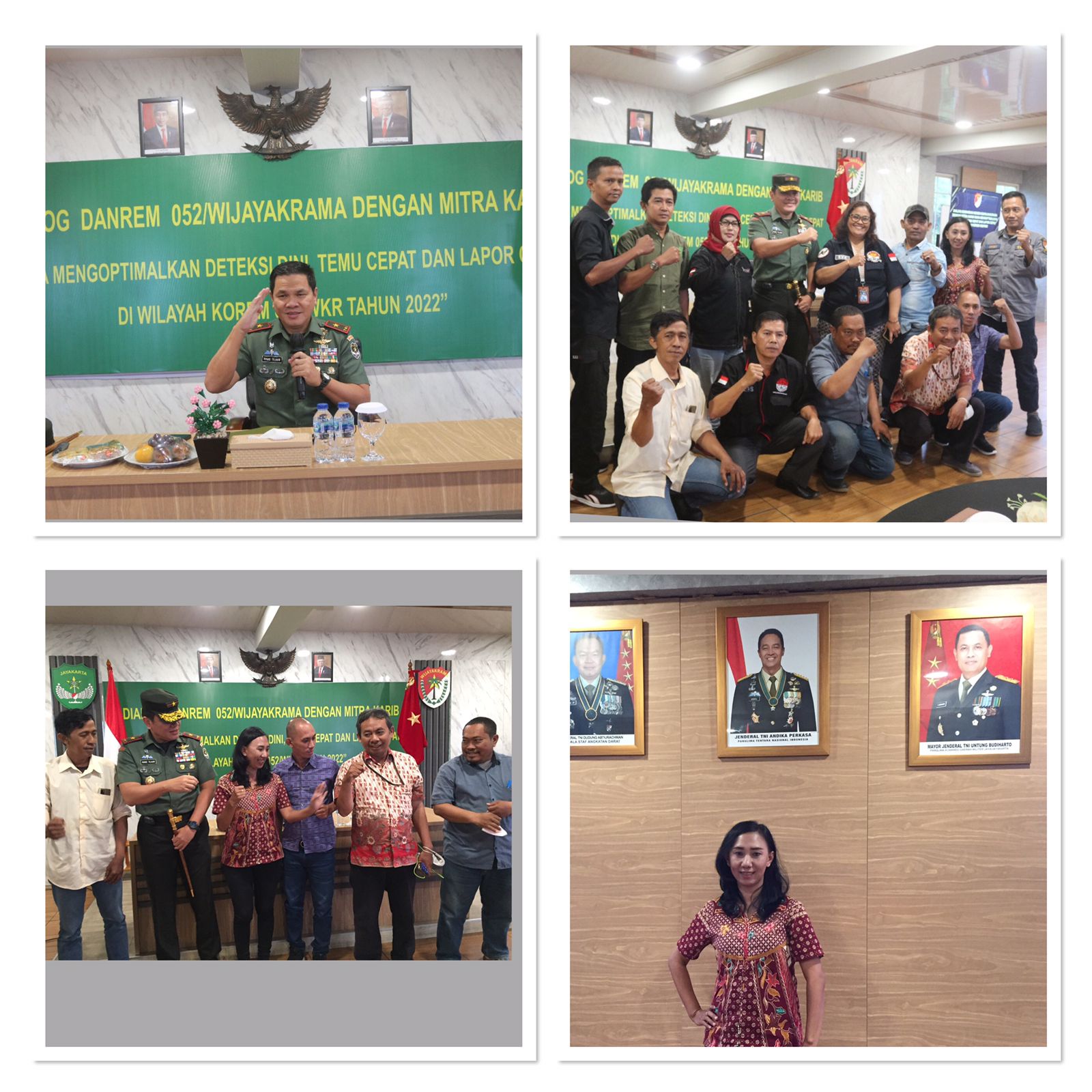 Adapun tema yang diangkat yakni, “Gunakan, mengoptimalkan Deteksi Dini, Temu Cepat dan Lapor Cepat Di Wilayah Korem 052/WKR Tahun 2022″, yang dihadiri Kolonel Arm Mulyadi Kasiter 052/WKR, Letda Jonny Penrem 052/WKR, rekan – rekan media mitra Korem 052/WKR.