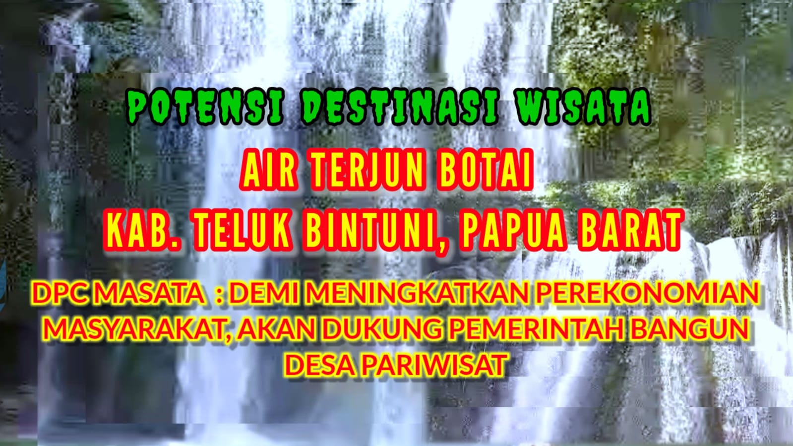 BINTUNI, PAPUA BARAT, MEDIAPOLRINEWS – Organisasi Masyarakat Sadar Wisata (Masata) Teluk Bintuni siap mengubah air terjun Botai yang terletak di hutan kampong Botai, Distrik Manimer, Kabupaten Teluk Bintuni, Papua Barat menjadi destinasi wisata jempolan.