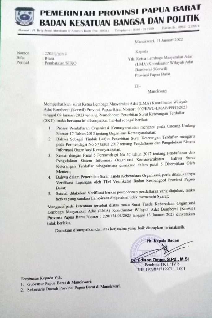 Kitika ditanyakan seputar adanya penolkan Pj Gubernur Papua Barat kepada ormas yang ingin mendaftarkan namun diduga ditolak tampa dasar yang jelas, dirinya sangat menyayangkan hal itu terlebih sudah ada aturan yang mengatur “Terlepas sebagai pemangku kebijakan tertinggi pengambil keputusan akhir di suatu daerah semestinya tidak juga boleh melakukan penolakan sekalipun penilaiannya ada hal kamtibmas yang jadi pertimbangan, karna negara sudah membuat catatan tersendiri untuk ormas terlarang, nah pertanyaannya apakah ormas itu tercatat terlarang” Tegasnya
