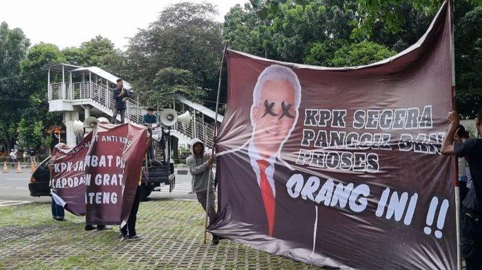 Dikutip dari Tribunnews bahwa Massa yang mengatasnamakan Solidaritas Masyarakat Anti Korupsi menggelar aksi di depan Gedung Komisi Pemberantasan Korupsi (KPK), Jumat (8/3/2024). Mereka mendesak KPK segera memeriksa Ganjar Pranowo dalam kasus dugaan gratifikasi.