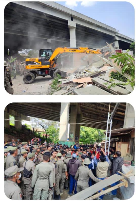 Total penertiban tersebut di lakukan kepada 32 bangunan kios, 1 toilet umum, 10 bangunan di bawah jembatan Tol Bocimi km 47, 1 pos ormas, dan 2 mobil yang parkir di bahu jalan.