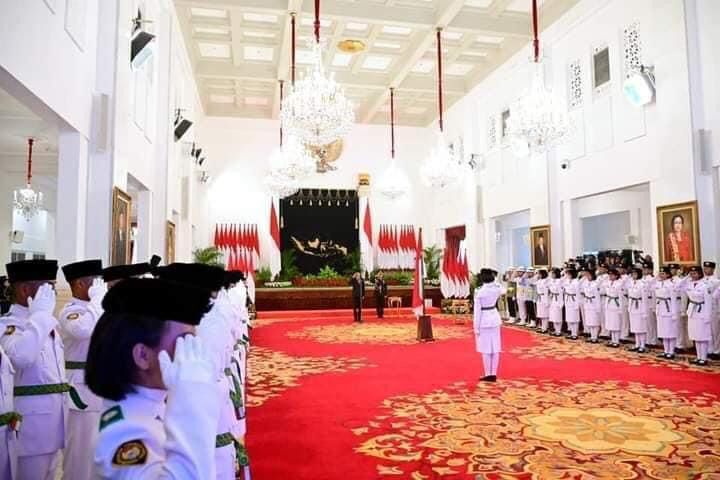 MEDIAPOLRINEWS, JAKARTA – Presiden Joko Widodo mengukuhkan 76 pelajar menjadi anggota Pasukan Pengibar Bendara Pusaka (Paskibraka) Tahun 2023. Presiden Jokowi bertindak selaku pembina upacara dalam pengukuhan yang digelar di Istana Negara, Jakarta, pada Selasa, 15 Agustus 2023