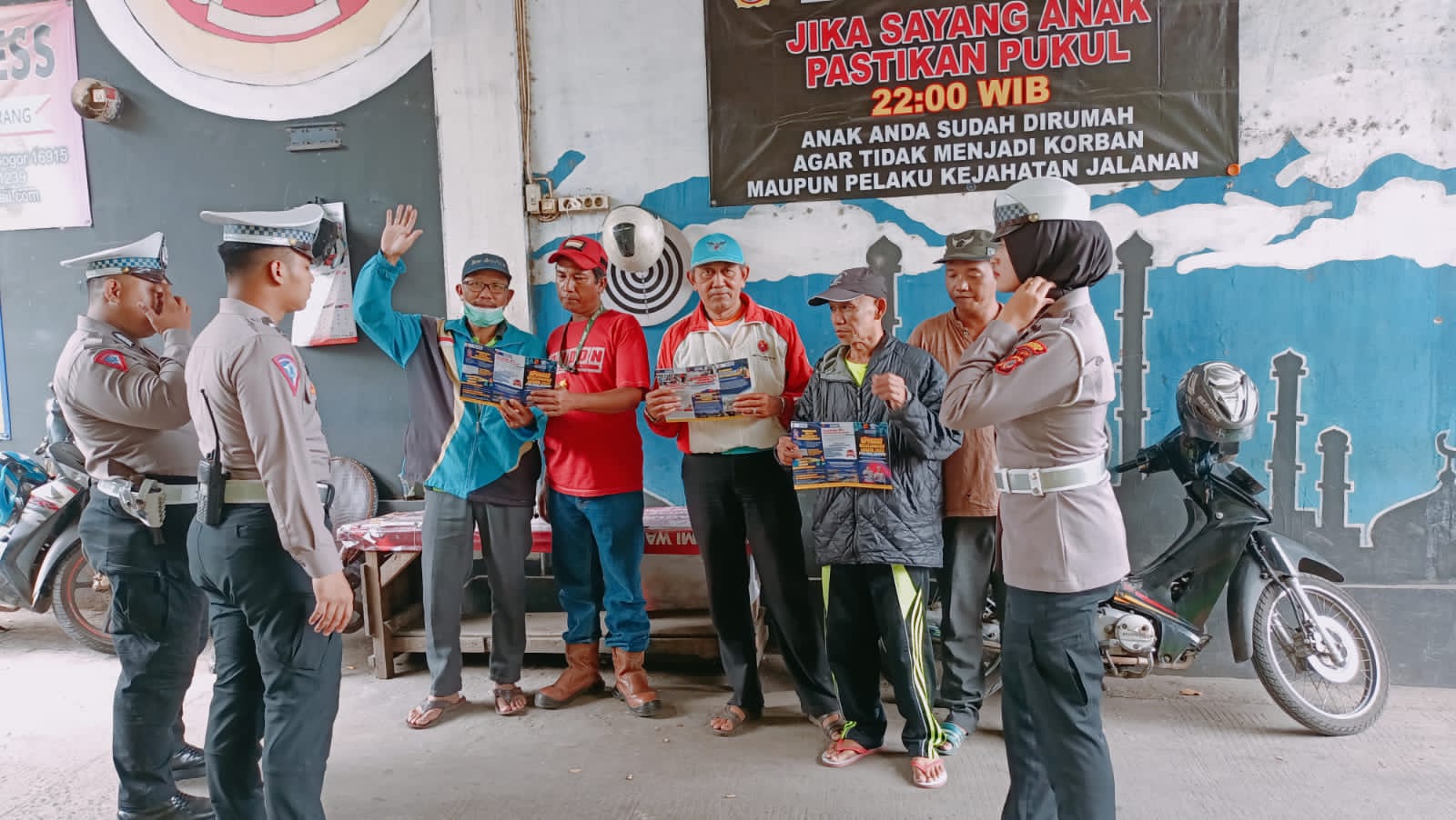 Selain informasi yang di berikan secara langsung kepada para pengendara ojek pangakalan , personel Satlantas Polres Bogor pun memberikan sosialisasi melalui pemberian brosur Operasi keselamatan 2023.