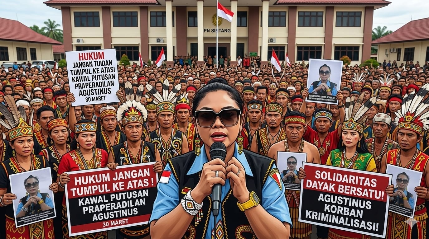 SINTANG, MEDIAPOLRINEWS – Menjelang pembacaan putusan praperadilan yang dijadwalkan pada 30 Maret 2026, Ketua DPD Gerakan Persatuan Nasional Nol Delapan (GPN 08) Kalbar, Linda, menyatakan dukungan penuh dan mengajak seluruh masyarakat adat Dayak untuk bersatu mengawal jalannya proses hukum di Pengadilan Negeri Sintang. Ajakan ini disampaikan menyusul kasus penetapan tersangka terhadap Agustinus, S.Pd, Pendi, dan Timotius Andrianto oleh Ditreskrimum Polda Kalbar yang dinilai cacat hukum dan bermotif kriminalisasi. Minggu, (29/03/2026).