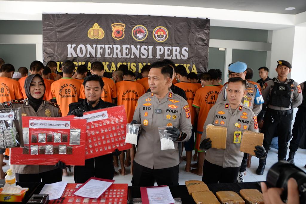 Kapolres Bogor AKBP Rio Wahyu Nugroho Anggoro S.H.,S.I.K mengatakan bahwa dalam pengungkapan yang dilakukan dalam kurun waktu bulan Juni 2023 tersebut Sat Narkoba Polres Bogor berhasil mengamankan sebanyak 32 orang tersangka, berikut dengan total barang bukti sabu seberat 0,6 kilogram, ganja seberat 6,03 kilogram, tembakau sintetis 74,2 gram dan sediaan farmasi sebanyak 315 butir.(20/07/2023)